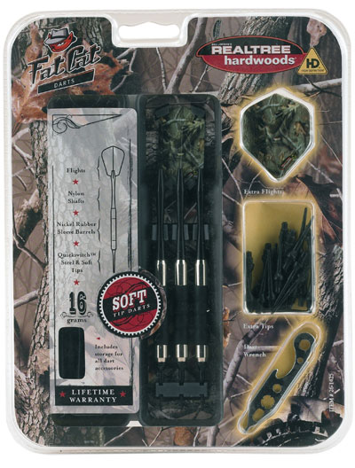 Licensed Realtree dart set is the ideal camouflaged dart to eye up the perfect shot. This dart also makes a great gift for the hunter in your life. What hunter wouldn't want camo darts?!? This camo dart set includes dart mechanic, wrench, extra tips, shafts and Realtree flights. Flights and shafts may vary. All darts sold in sets of 3.