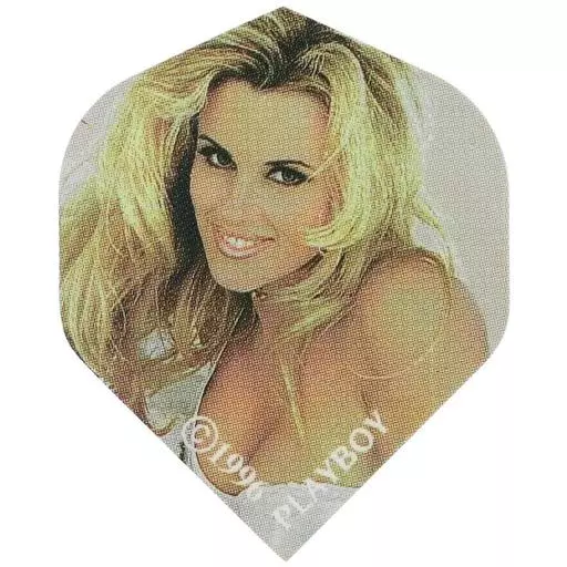 These standard dart flights feature 1996 Playboy and a blonde woman. Standard flights are the largest, giving the most lift and is the most stable in flight, but tends to be slower.